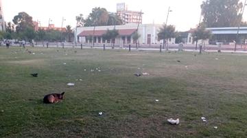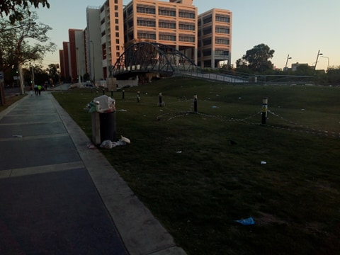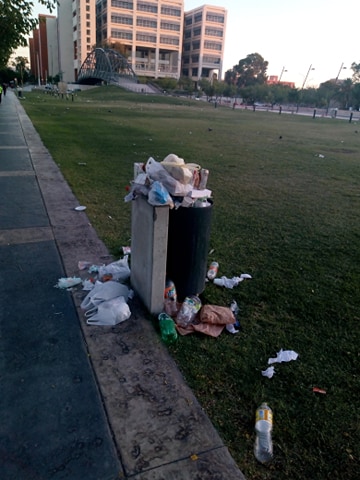 Un lector envió imágenes tomadas en la mañana del lunes en las que muestra basura desparramada en la Plaza del Bicentenario.