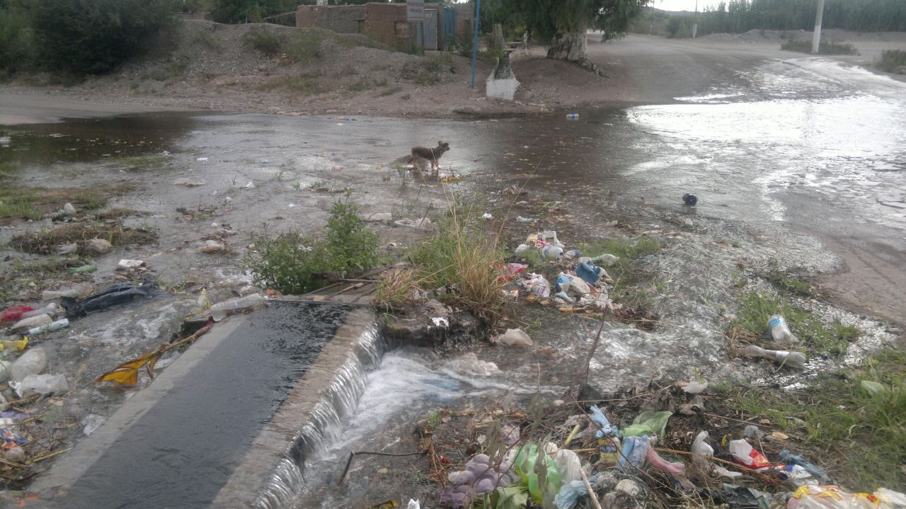 Basura y agua por todos lados. Esto es en calle La Laja, en el badén de Las Piedritas, Albardón. Hace más de una semana que está así. El caudal de agua es mucho y con la basura que suelen arrojar se junta todo. ¿Quién es el responsable, Hidráulica u obras públicas del departamento?