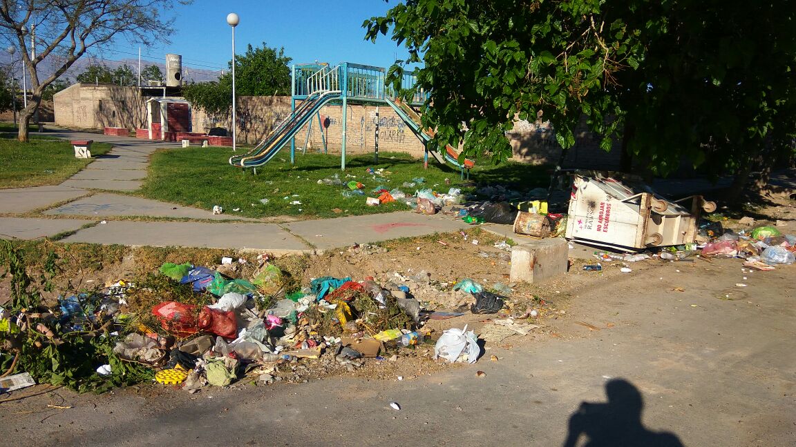 Hartos de hacer reclamos, los vecinos decidieron llevar la queja a los medios. En la plazoleta ubicada sobre calle Calingasta y Julio Núñez, del Barrio 24 de Noviembre, en Rawson, hay basura acumulada desde hace varios días y los contenedores se encuentran en la misma situación.