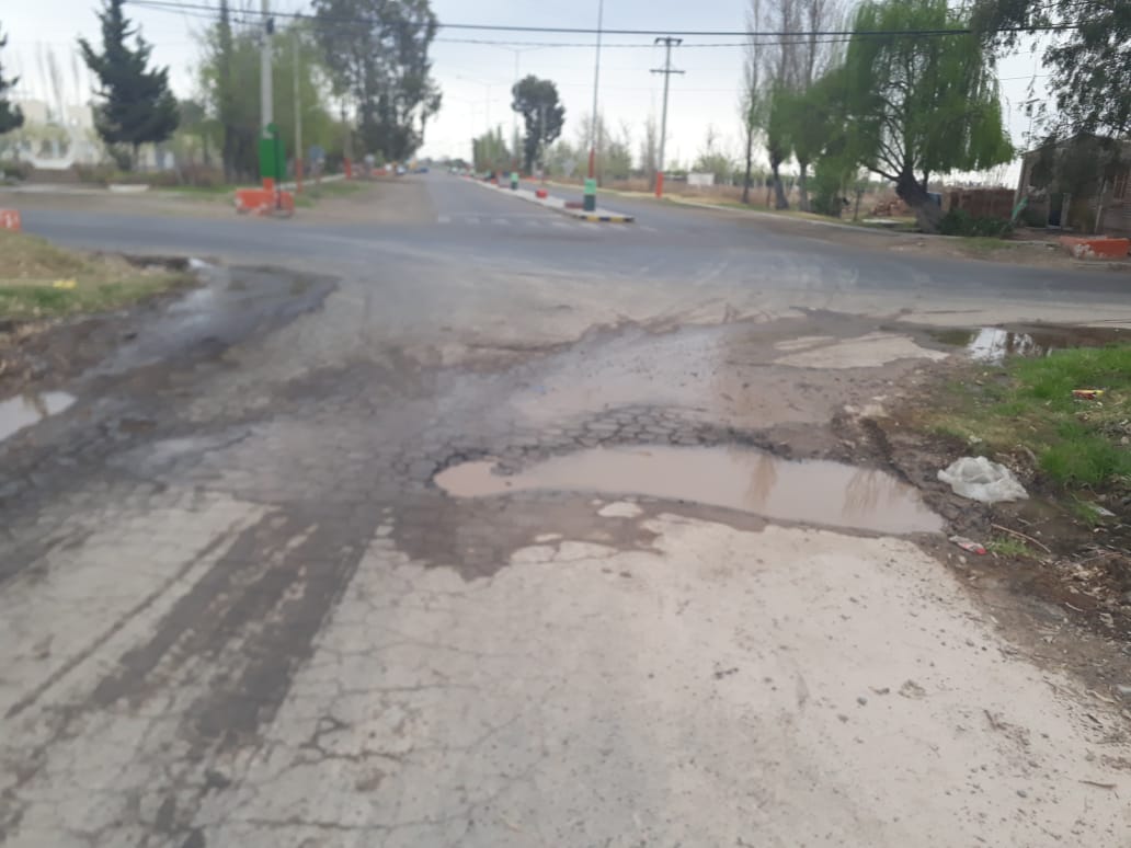 Un lector envió una imagen y el siguiente comentario: "Esta es la esquina de Cruz Godoy y Rawson en La Puntilla – San Martin. Hicimos varios reclamos pero no tuvimos solución justamente hay un canal de riego y aparentemente esta roto el caño eso hace que se rompa más el asfalto pero el pozo en si está hace mas de un año y medio".