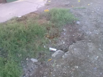 Un lector envió fotos que muestran que en el callejón Ullum, en la entrada principal al Barrio Parque Rivadavia Norte, una parte del pavimento está hundida.