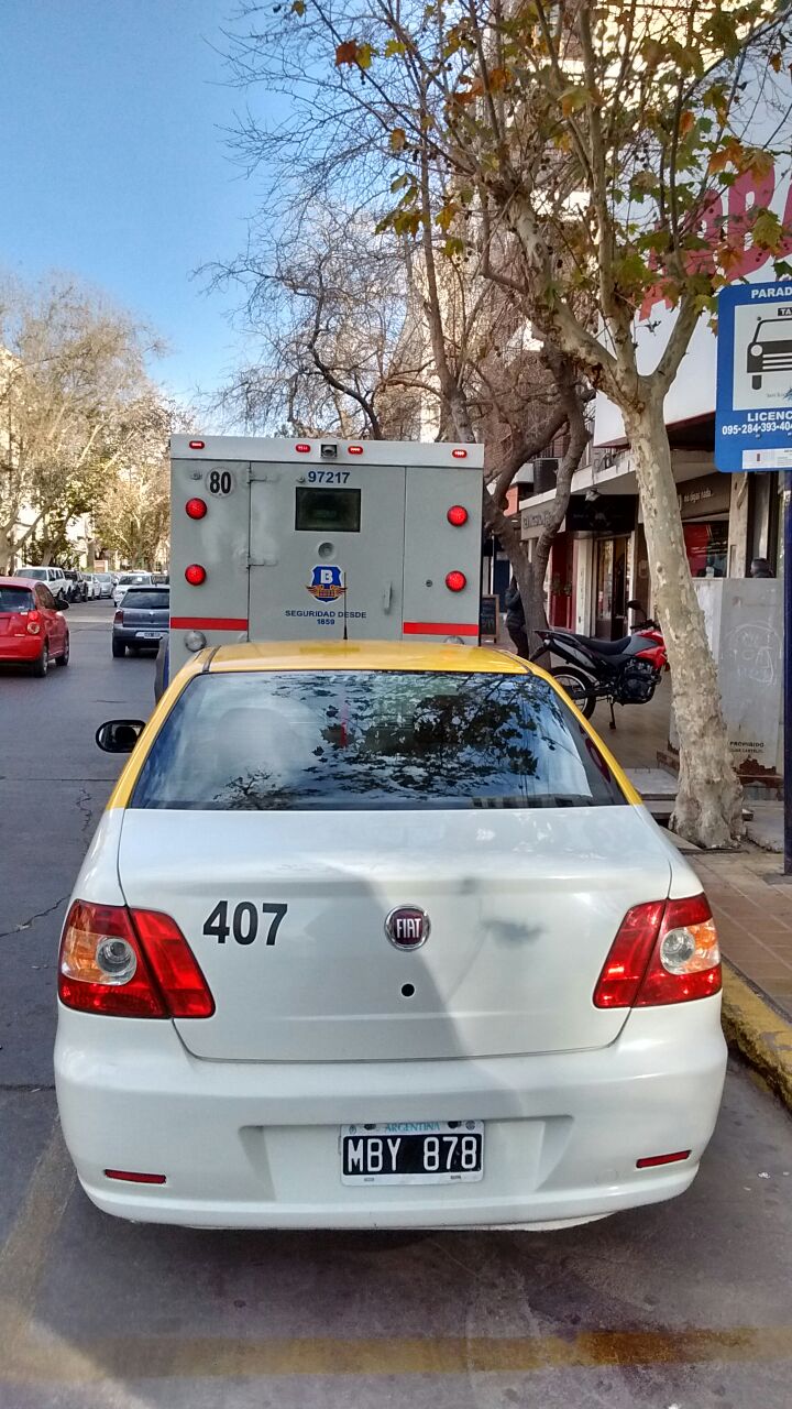Taxistas de diferentes paradas de la Capital enviaron imágenes y se quejaron del accionar de los camiones de caudales: "Esta gente hace lo que quiere, ocupa nuestro lugar, te tira el camión encima y la mayoría de las veces sosn unos irrespetuosos cuando uno les dice algo. Que alguien los controle!".