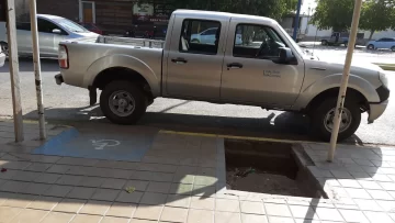 "Esta camioneta de Vialidad Nacional se estacionó en una rampa para discapacitados, obstaculizando el paso".