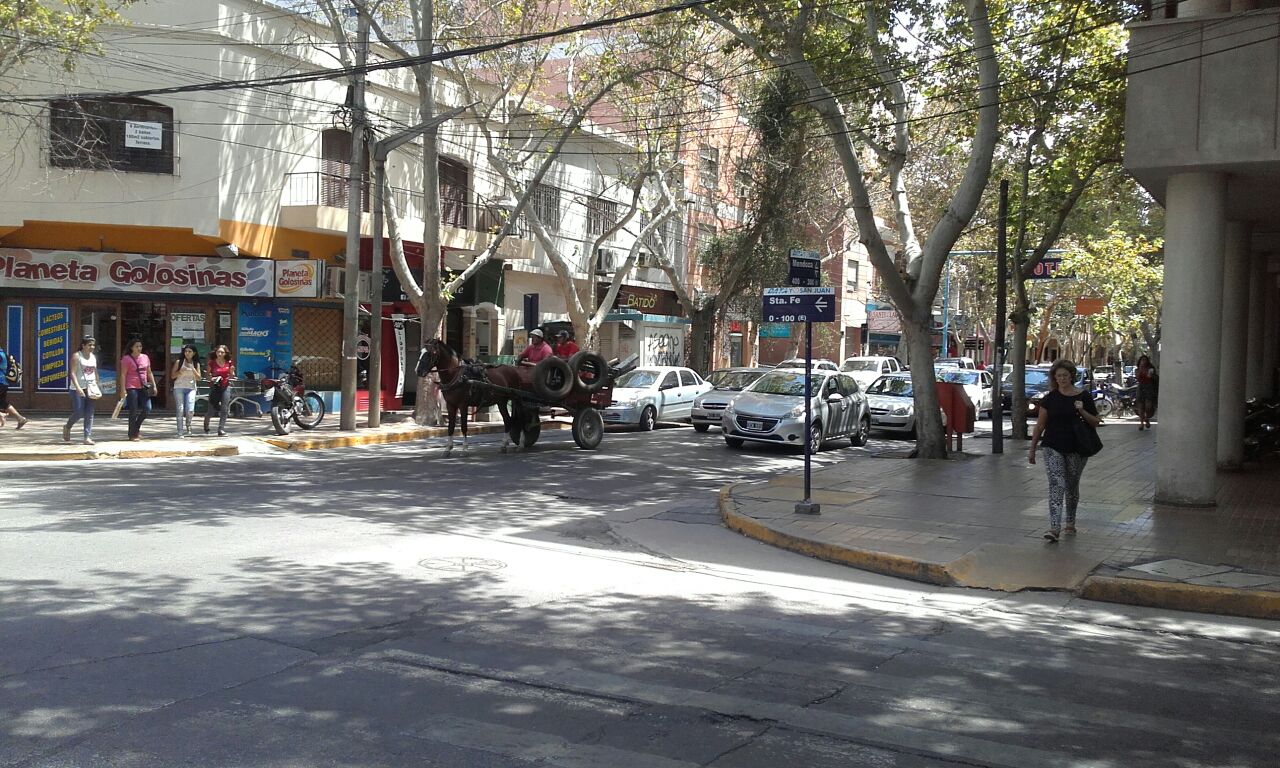 Una carretela en pleno centro, circulando por Mendoza antes de Santa Fe. Enviado por un lector que no se identificó.