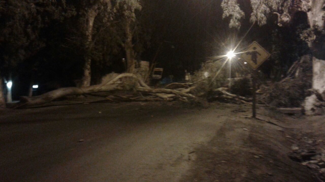 En la noche de este lunes buena parte de un eucalipto cayó en Calle 6 y Lemos, Pocito, obstaculizando el tránsito en la zona y generando preocupación en los  vecinos.