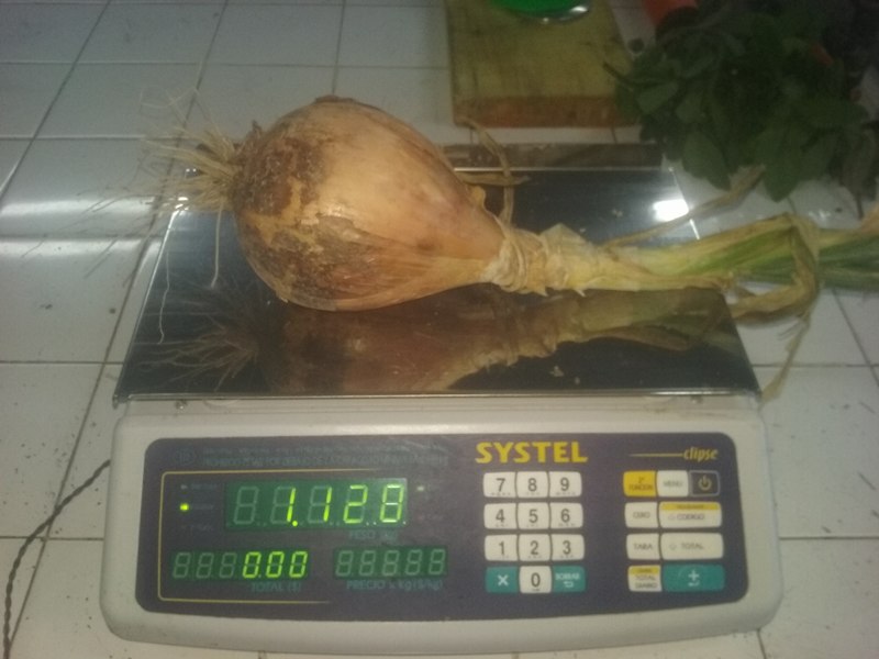 Un lector envió una imagen y el siguiente comentario: “Cosecha en la Escuela Agroindustrial de 25 de mayo ¡cebollas grandes! Los pesos rondaron 1,120 kg y también hay de 900 gramos, no bajan de ese peso”.