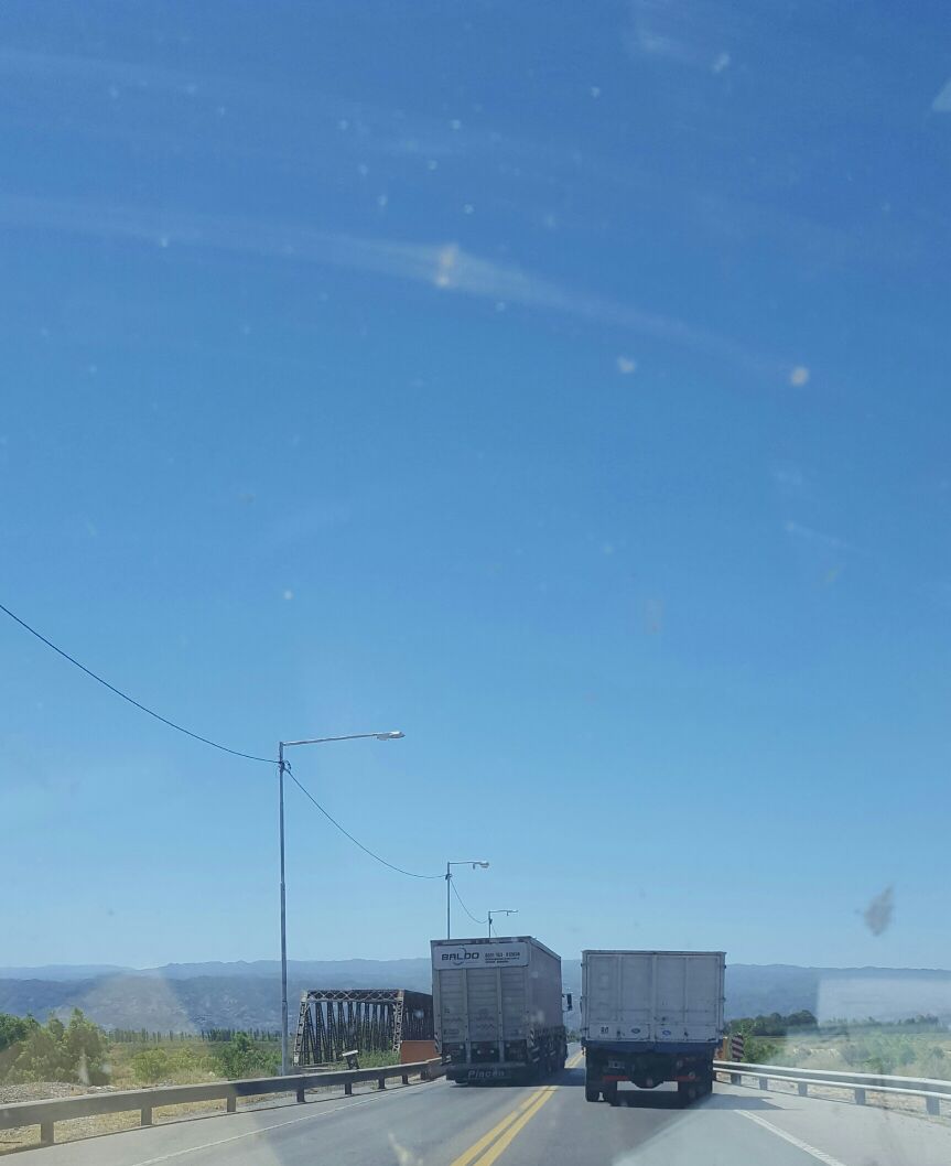 Paso por el puente de Caucete. ¿Y estos son profesionales al volante? Enviado por un lector que no se identificó.