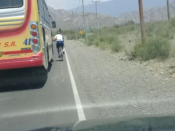 Eso sucedió el martes a las 13.45 frente a Poka Tok. No dejaban pasar a nadie. El colectivo iba a 30 km y tanto el ciclista como el colectivero iban conversando entre ellos.