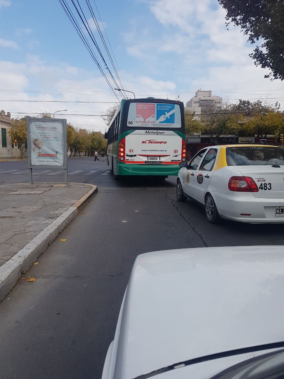 En avenida Libertador y Alem, en Capital. Un colectivo parado sobre la senda peatonal esperando a que el semáforo cambie a verde.