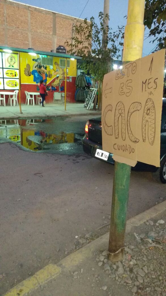 Un lector envió una imagen y el siguiente comentario: "Esto puso la gente en calle Santa Rosa y Bulevard Sarmiento, en Rawson. Estamos hartos de no encontrar respuestas".
