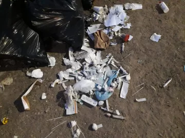 Jeringas, algodones y otros desechos, fueron depositados en una bolsa que posteriormente fueron destrozadas por perros de la zona. Los vecinos de la zona sospechan que los residuos provienen de alguna clínica cercana.