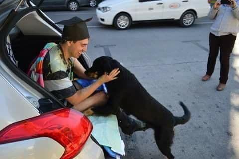 "Hola gente!! Les quería compartir una foto muy tierna de un chico que ayer se recibió de ingeniero…y un callejerito se arrimó a saludarlo y compartir su alegría!! Ojalá esto sirva para que adopte la gente a estos seres llenos de luz!! Besos", fue el mensaje que mandó junto con la foto.