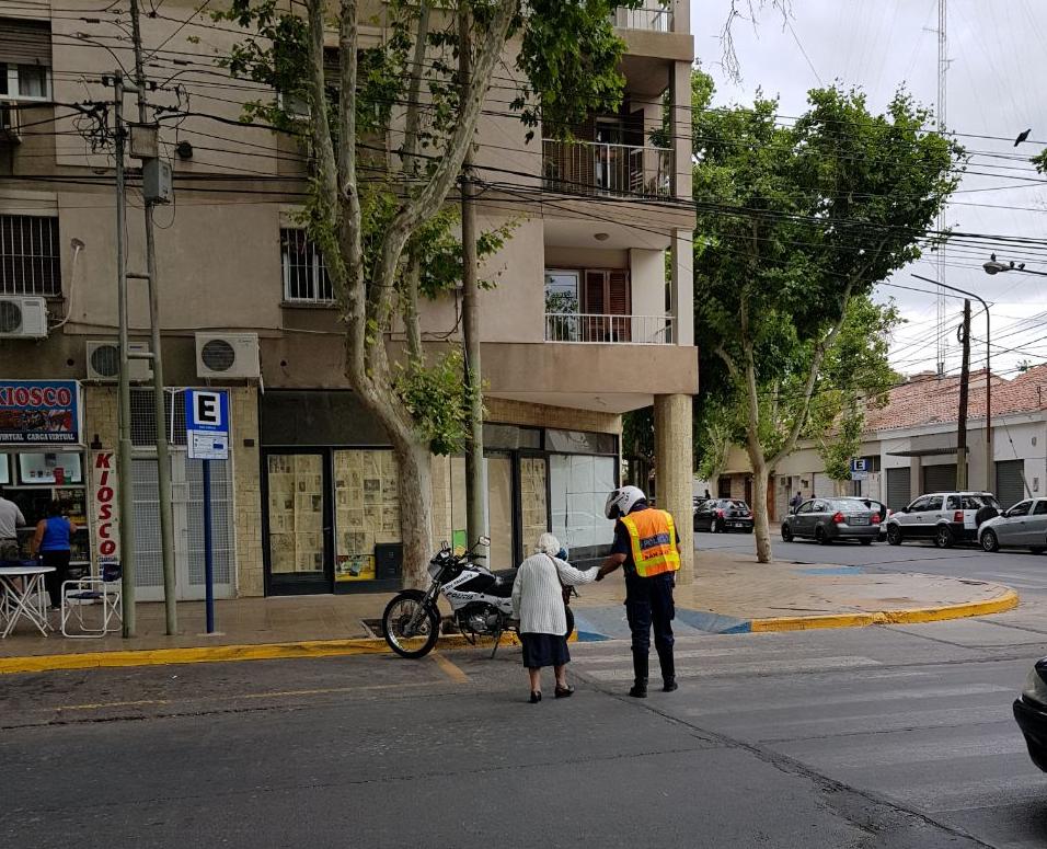 Según contó, un efectivo de la Motorizada detuvo el tránsito en la intersección de Rivadavia y Caseros y acompañó a una anciana que quería cruzar la calle.