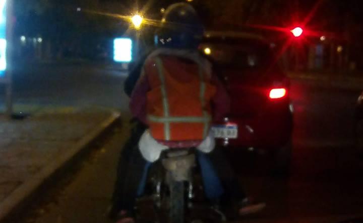 Un lector envió imágenes de un motociclista que circulaba por las calles de la provincia con dos niños y en plena noche, sin luz.
