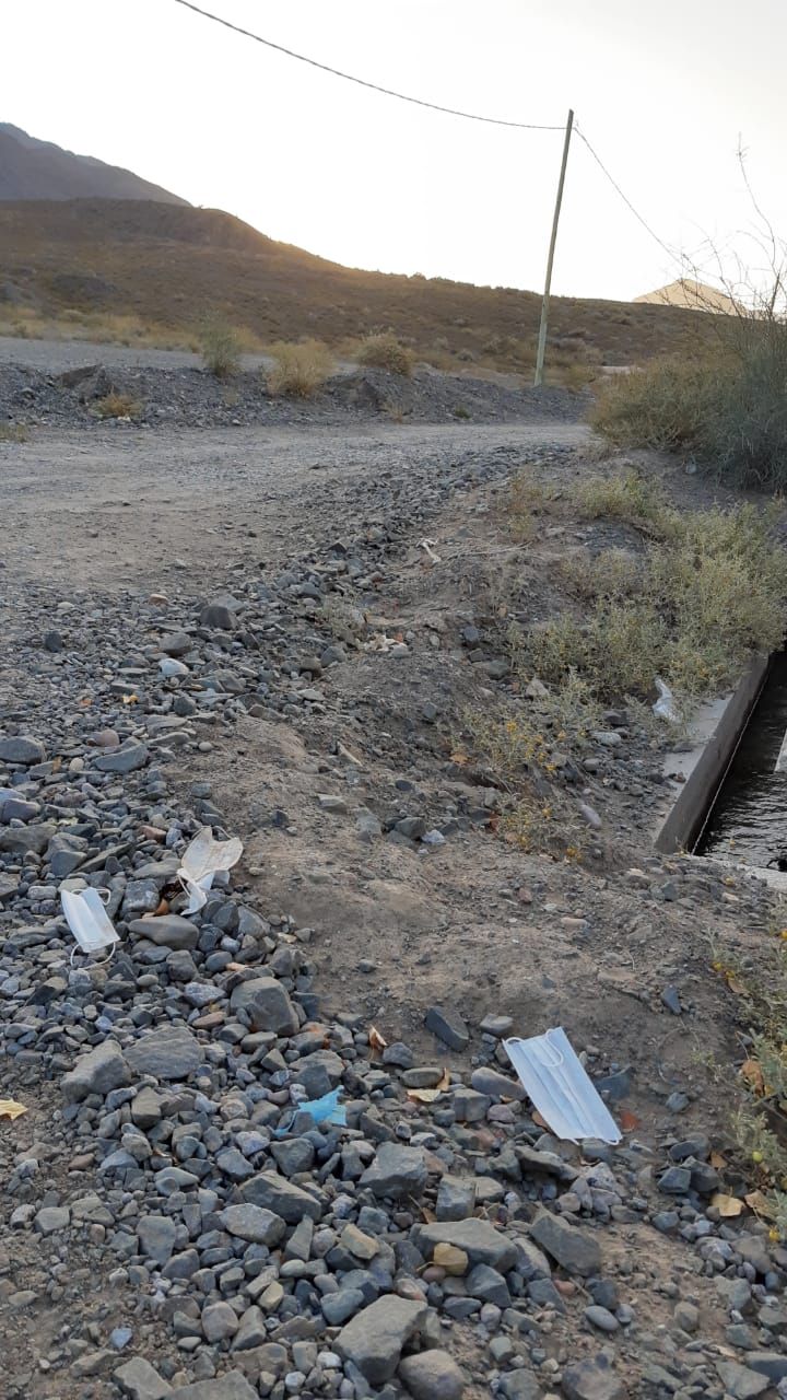 "En las imágenes se muestra que las personas que concurren a practicar actividad física en las Sierras Azules tiran los barbijos en cualquier sitio. La seguridad de otros y la contaminación de las fuentes de agua están en peligro. Estas aguas se usan para regadío. Pedimos mas control por parte de la municipalidad".