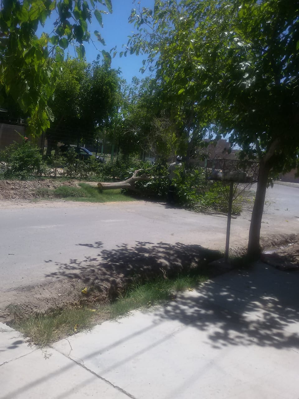 Un lector envió una imagen y el siguiente comentario: "Una vecina del barrio La Cañada en Rivadavia se encuentra erradicando arboles publicos".