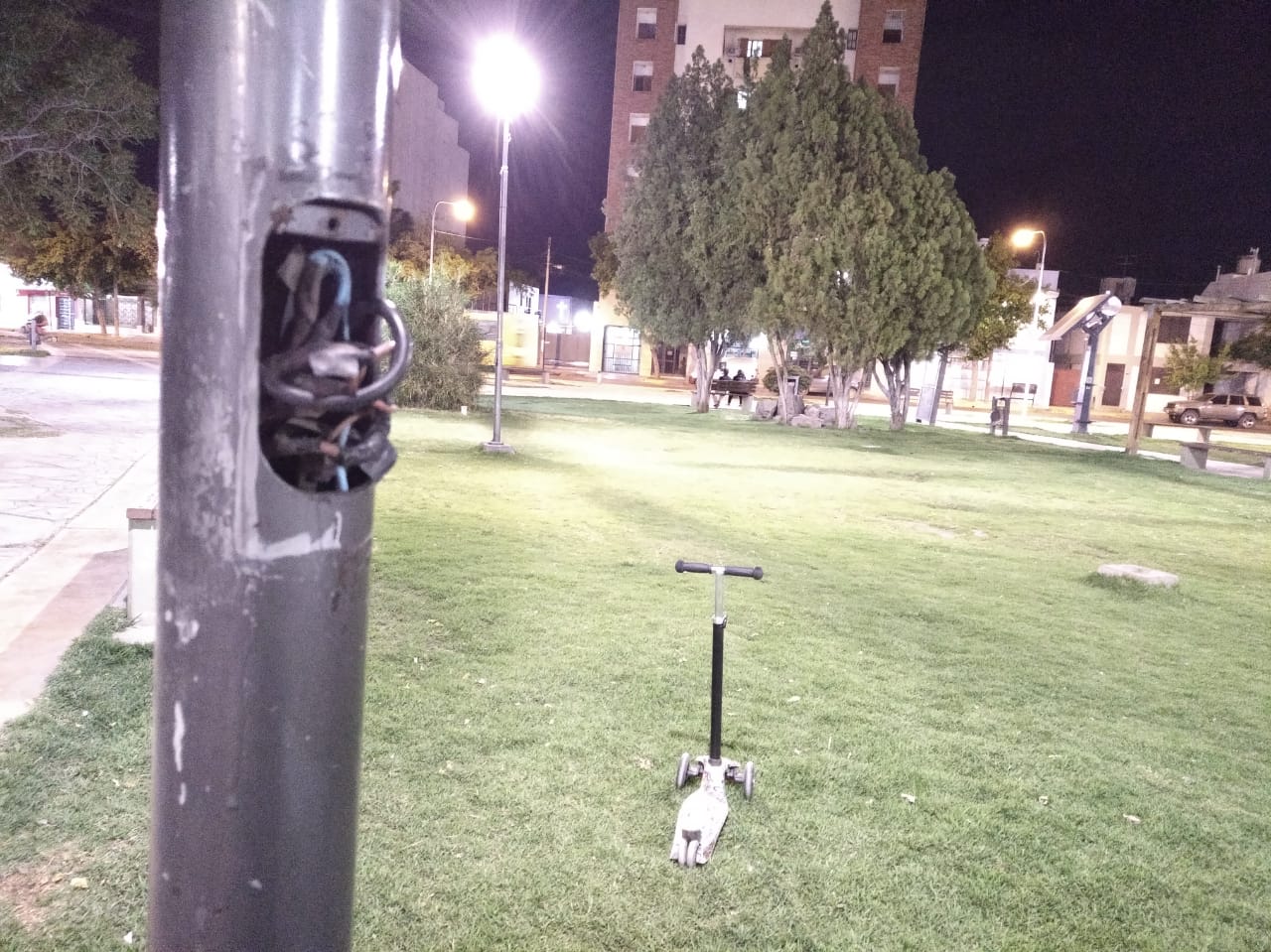 “Las farolas están sin tapa y los niños juegan en el lugar”, indicó al referirse a las luminarias del espacio verde más conocido como “plaza de la Joroba”.