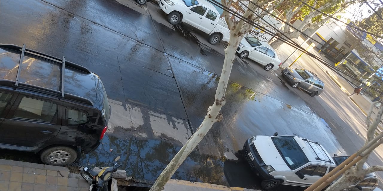 Un lector envió una imagen y el siguiente comentario: "Ante demasiados reclamos a OSSE desde el mes de junio sin tener respuesta nos vemos obligados a hacerlo público. Es insoportable el olor a cloaca. La gente pisa e ingresa al edificio público, los autos salpican, todo con agua de materia fecal. Las cunetas están llenas de agua cloacal. Esto es en Mendoza y 25 de Mayo, en el centro".