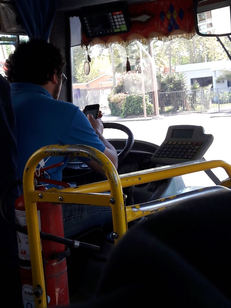 Un lector envió una imagen y el siguiente comentario: "Este es en un colectivo del 10 (La Positiva) a las 12:30 del mediodía. El chofer utilizando el celular en Ignacio de la Roza y Hermógenes Ruíz".
