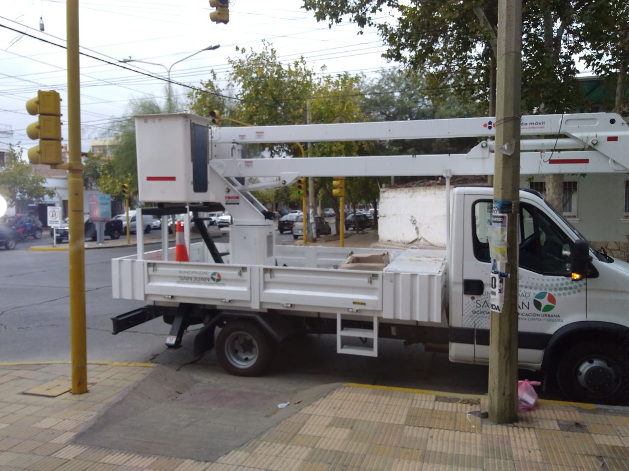 El vehículo, perteneciente a la Municipalidad de la Capital estaba parado en la ochava, justo frente a la rampa para personas discapacitadas y al lado del cordón pintado de amarillo.