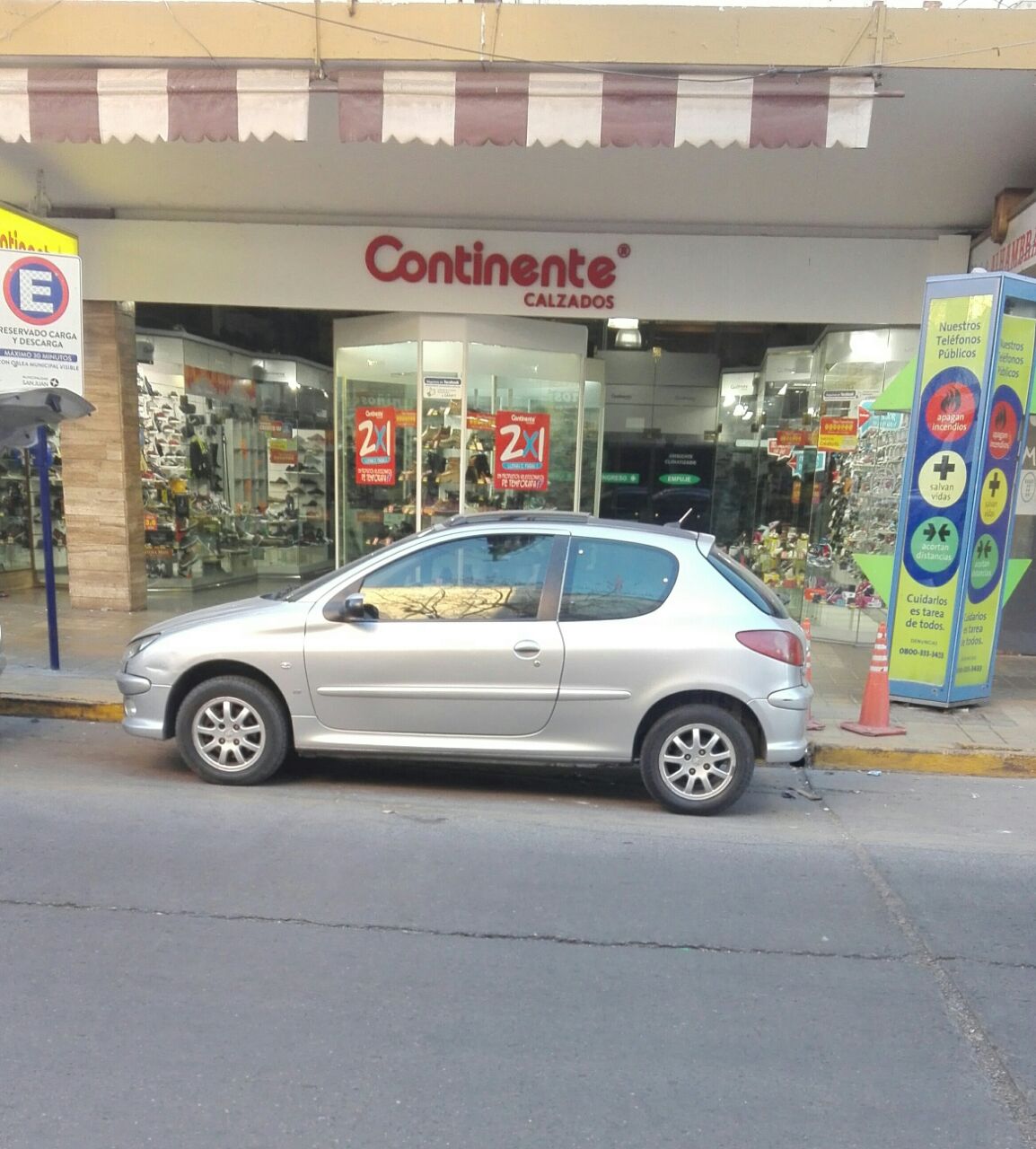 Una lectora envió una imagen y el siguiente comentario: "Estoy indignada xq este Peugeot 205 viene estacionado hace 3 días!! No nos deja descargar, soy dueña de un local hoy vine temprano xq tengo que bajar mercadería y no pude!!! Cumplamos las señales de tránsito!!! El cartel dice CARGA y DESCARGA máximo de permanencia 30 minutos!!!!!! NO toda la mañana!!!!! Es en la calle General Acha y Rivadavia, Capital".