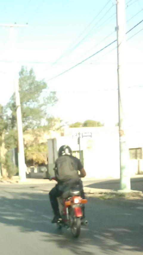 Un lector envió una imagen y el siguiente comentario: "Este policía vieja en moto y como se ve lo hace sin chapa patente y sin chaleco. Cualquiera de nosotros lo hace y nos multan o quitan la moto".