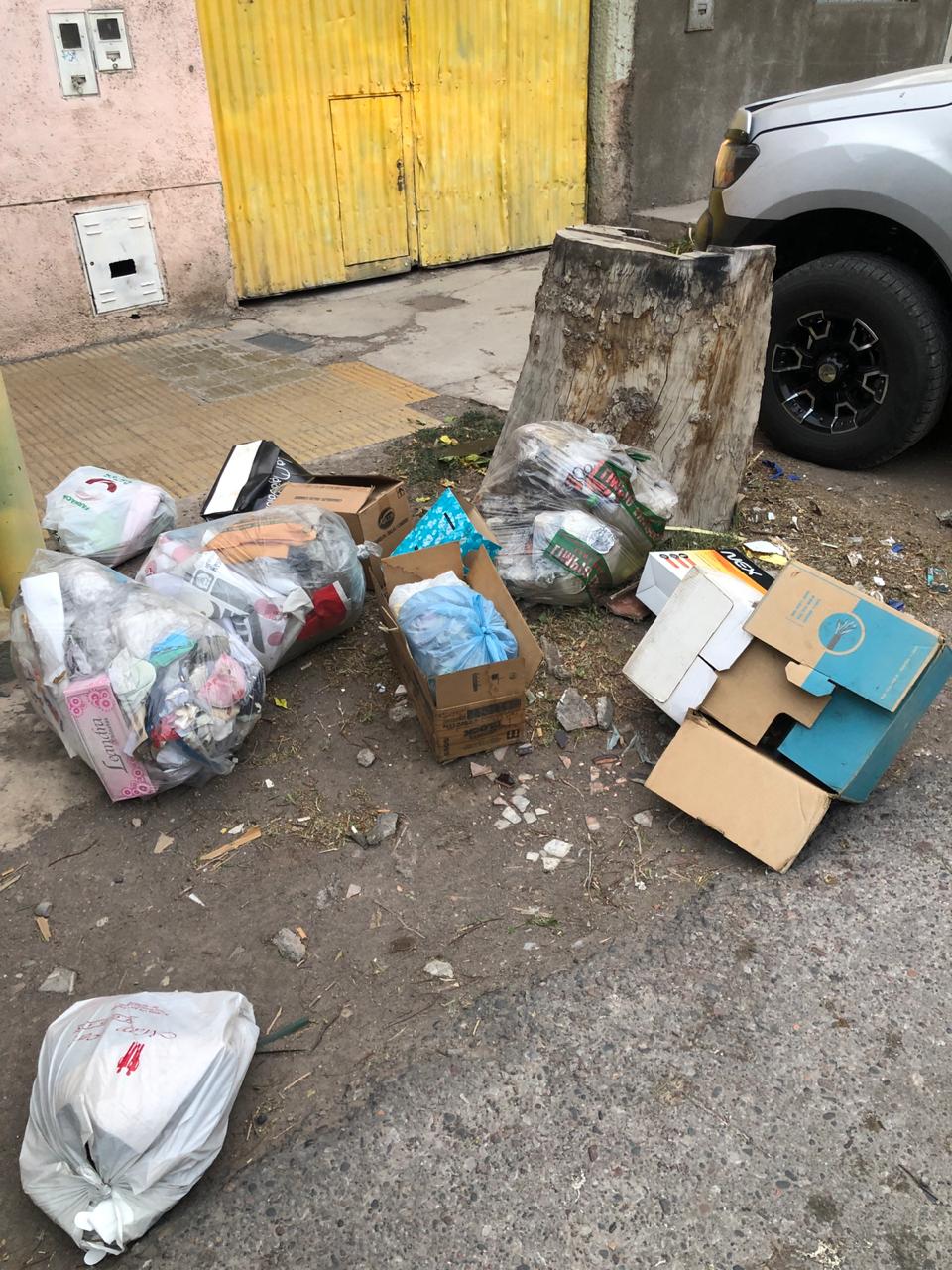 Un lector envió una imagen y el siguiente comentario: "Esto es en Paula Albarracín de Sarmiento al 400 Sur, entre Rivadavia e Ig. de la Roza. Es permanente residuos sin levantar".