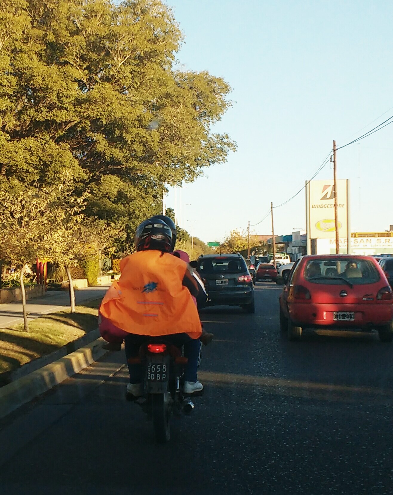 Un lector envió una imagen y el siguiente comentario: "Una imagen de todos los días. Sé que no de debe andar de a tres en moto. Pero por lo menos tu hijo/a debe llevar uno. Vienen cascos talle kids".