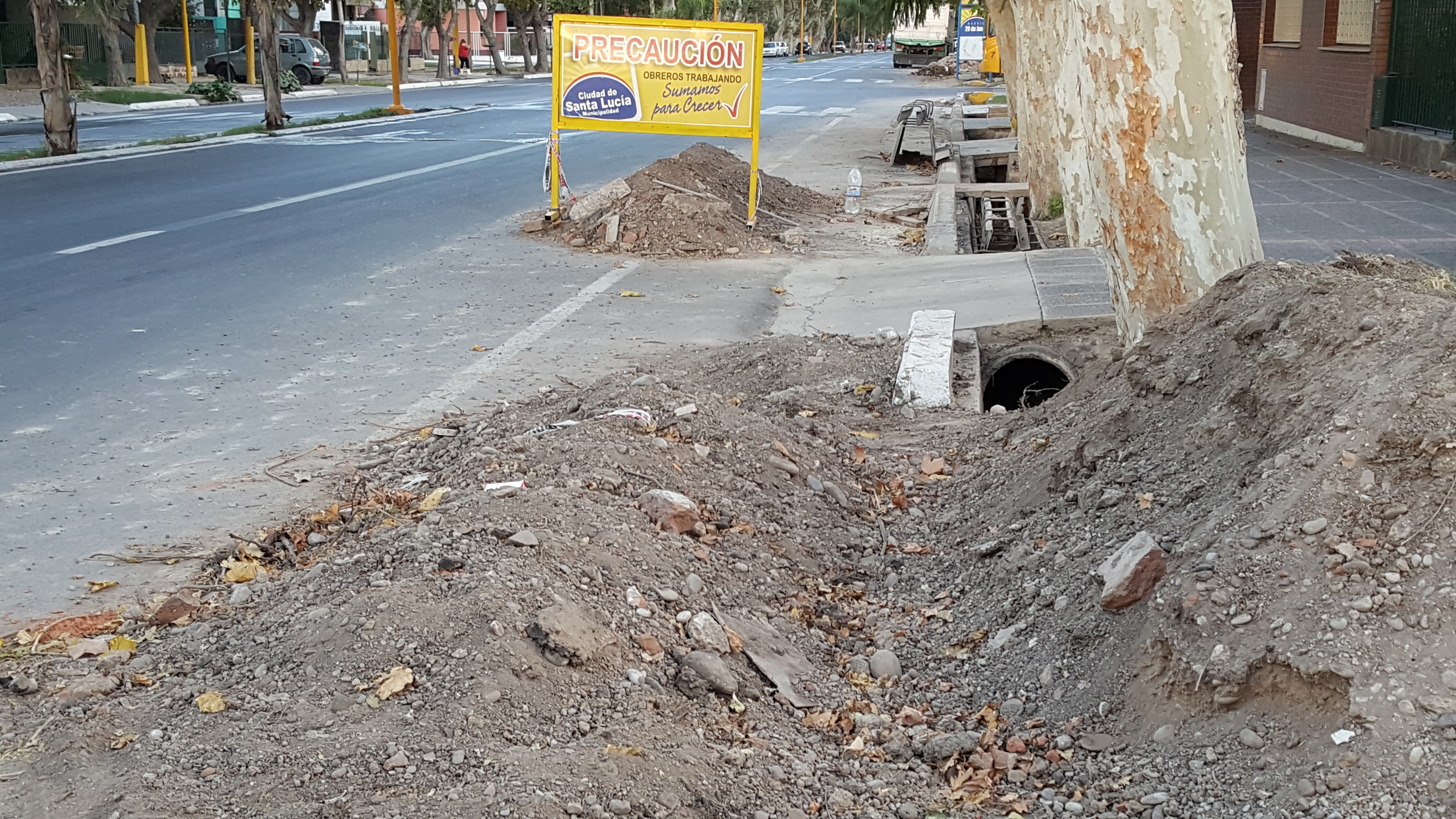 La lectora Romualda Masa envió un mensaje y el siguiente comentario: "En Santa Lucia calle Irigoyen Este, a solo dos cuadras de la plaza principal, desde el 2500 al 2800 Este; hace mas de un mes que no se terminan trabajos de cordón y cuneta con el peligro para vehículos y peatones. Los escombros cubren media calzada y se encuentran casi abandonados".