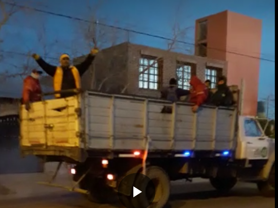 Un lector envió un mensaje y la siguiente imagen: "Fea actitud de parte de las autoridades del municipio de Rivadavia, después de una semana de muy bajas temperaturas, el personal obrero municipal es llevado en las cajas de los camiones a su lugar de trabajo. En total abandono de leyes de tránsito y derechos humanos".