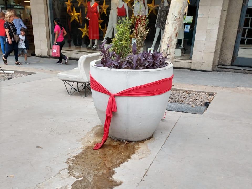 Un lector envió una imagen y el siguiente comentario: "¿Tampoco tuvieron en cuenta esto en la Peatonal? Hasta en las plantas de cualquier casa se prevé esto -con un platito o recipiente abajo- y acá no. Un papelón".