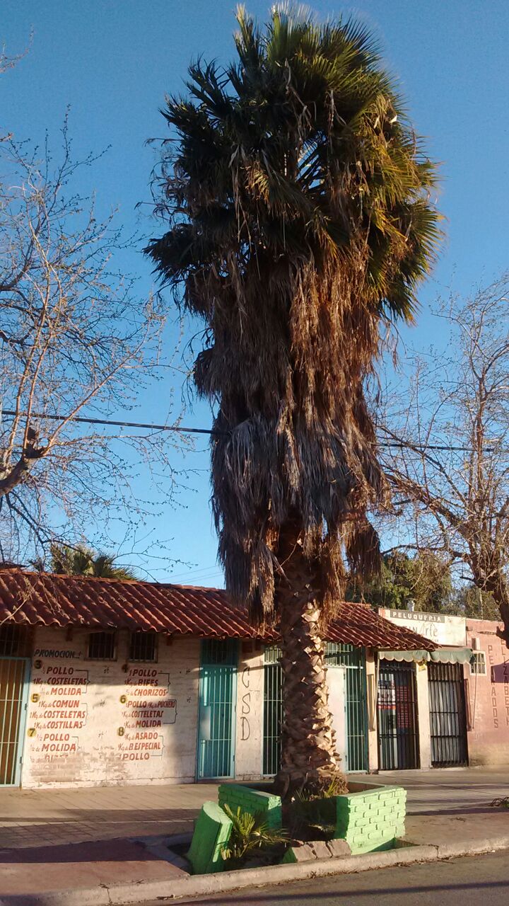 Estas palmeras están invadidas por roedores en el centro comercial del barrio Aramburu, Rivadavia.