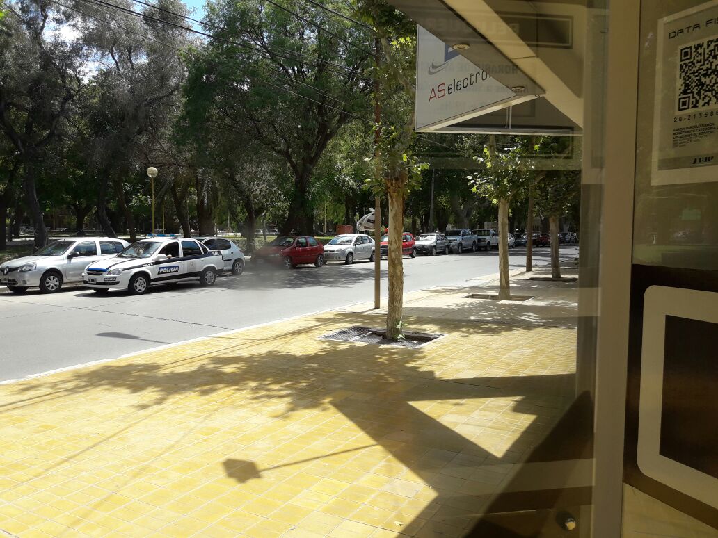 Un lector envió una imagen y el siguiente comentario: “Este patrullero en doble fila frente a la Plaza Gertrudis Funes de Capital este sábado al mediodía… deberían dar el ejemplo”.