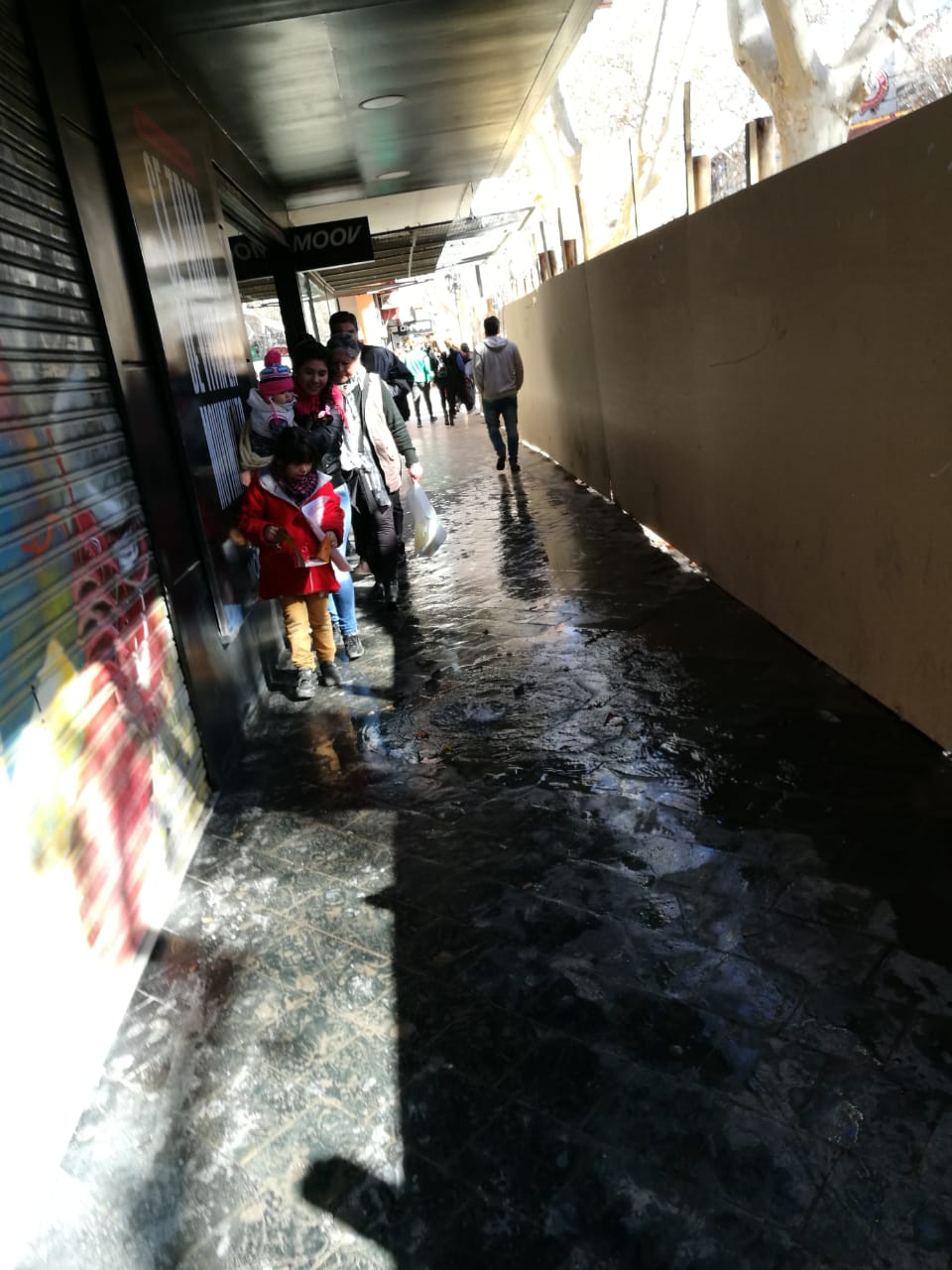 Un lector envió una imagen y el siguiente comentario: "En la Peatonal no se puede caminar por las obras y en el pasillo que nos dejan a los clientes este martes en la mañana estaba inundado. No hacen nada bien".