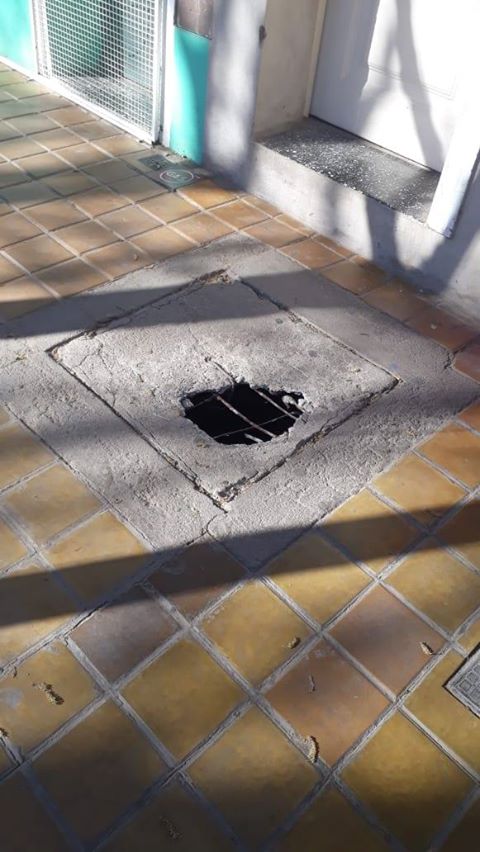 Un lector envió una imagen y el siguiente comentario: "Vereda de calle Sarmiento, costado Este, antes de llegar a Libertador. Hay un hueco que es un peligro".