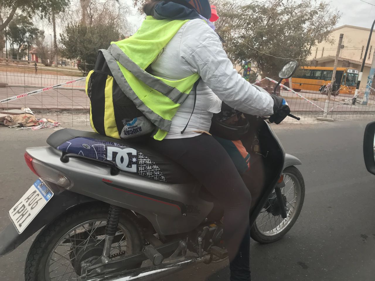 "Esto fue el lunes a las 15, en Boulevard Sarmiento y calle España, en Rawson. Un peligro que el niño esté en ese lugar de la moto".
