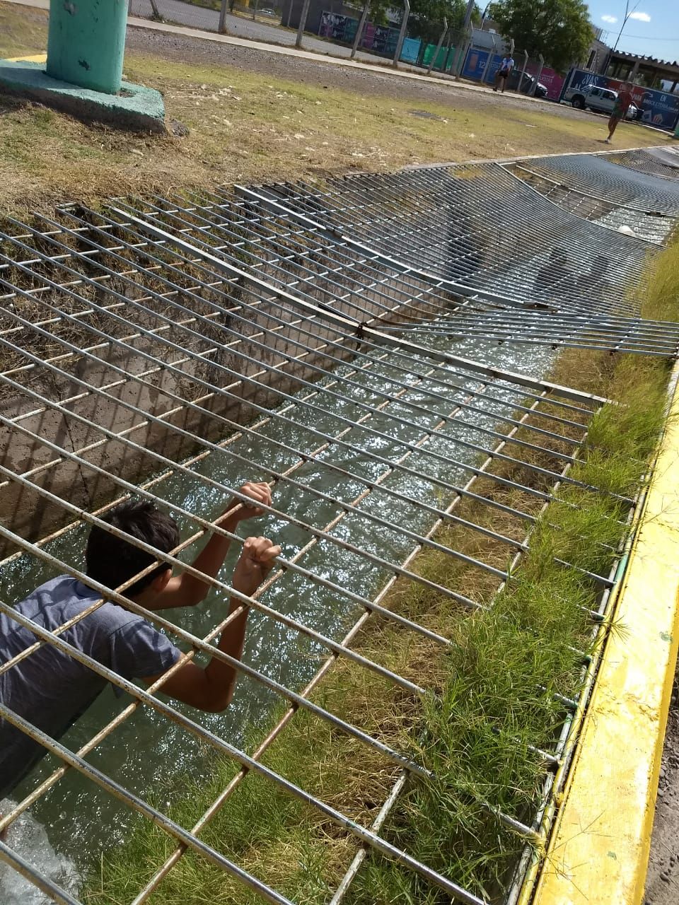 Una lectora de DIARIO DE CUYO envió una foto donde se ven 3 niños jugando en un canal de Rivadavia, este lunes alrededor de las 17.