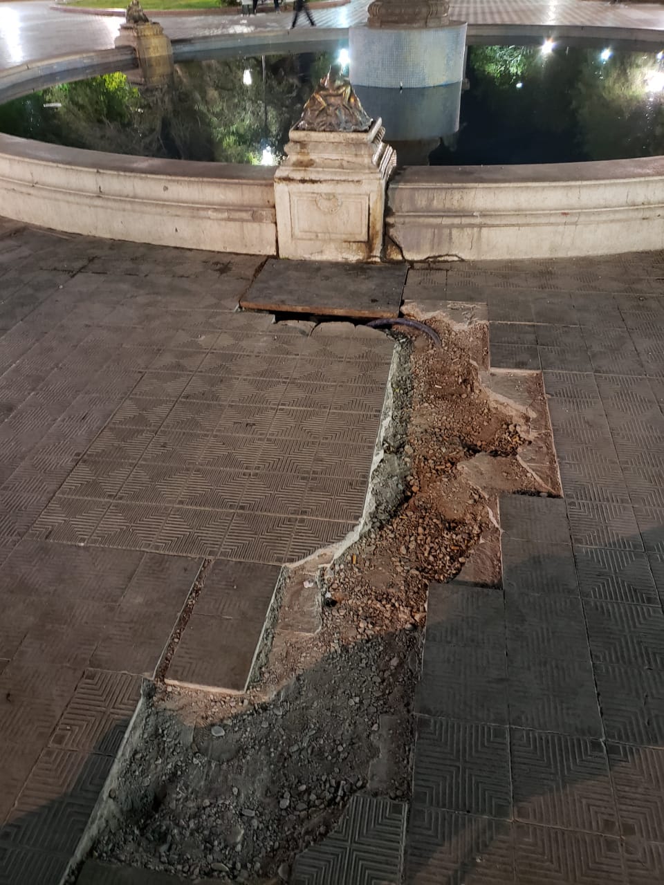 Un lector envió una imagen y el siguiente comentario: "Esta rotura en la Plaza 25, al lado de la fuente, lleva días y días. Esta es la cara de la ciudad, la peor que podemos mostrar".