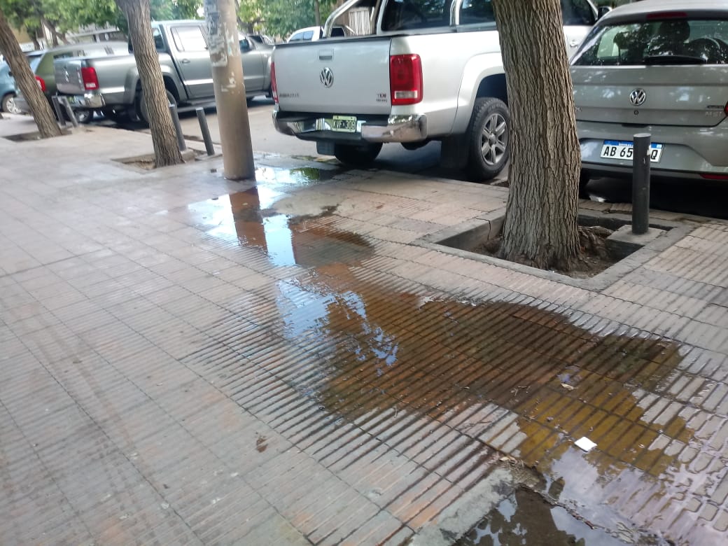 Según relató, para regar los canteros dejan canillas abiertas, el agua comienza a derramarse y se va hacia la vereda, inundándola por completo. A la vez, el agua corre hacia la calle y recorre una cuadra hasta caer en la alcantarilla de la esquina.