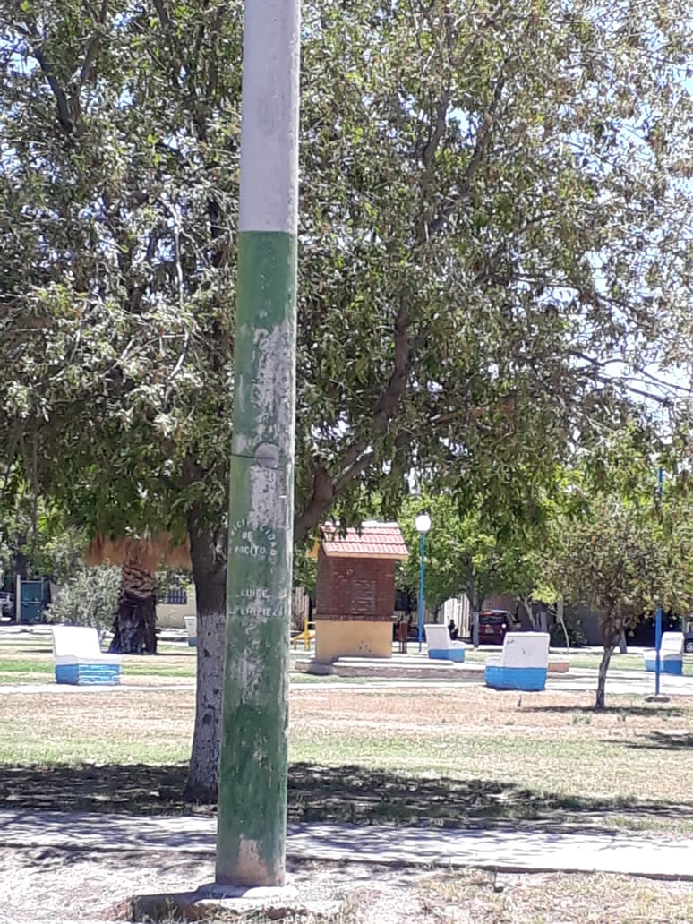 Un lector envió una imagen y el siguiente comentario: "Esta plaza es la del barrio Santa Rita, en Pocito. No la riegan nunca, es la dejadez total".