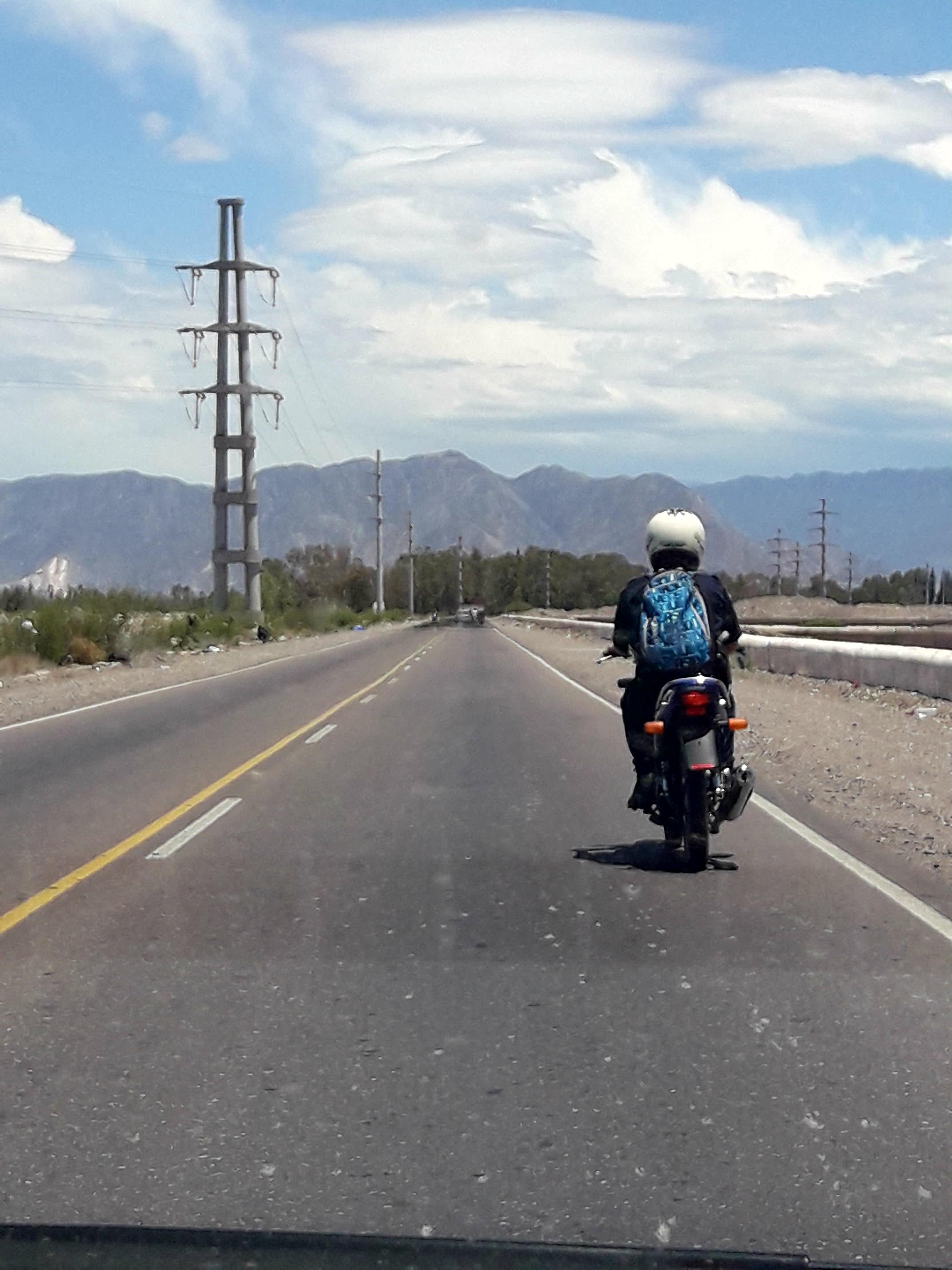 Un lector envió una imagen y el siguiente comentario: “Este policía en moto, sin patente y ni espejos retrovisores. No dan el ejemplo”.