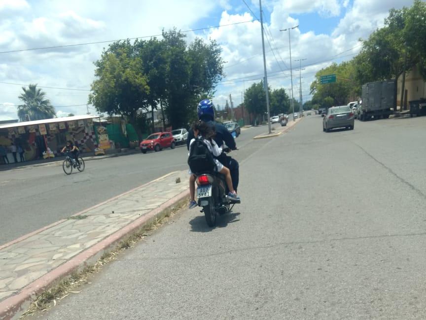 Un lector envió una imagen y el siguiente comentario: "Este policía lleva a una nena, cosa que está prohibido. Además, ¿dónde está el chaleco que nos exigen a todos los motociclistas".
