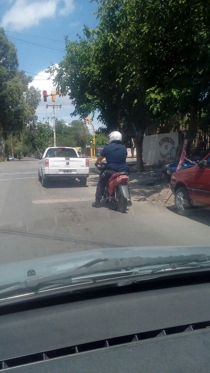 Un lector de DIARIO DE CUYO envió una imagen que se repite día a día en distintos puntos de la provincia: un policía circulando en su moto particular sin patente.