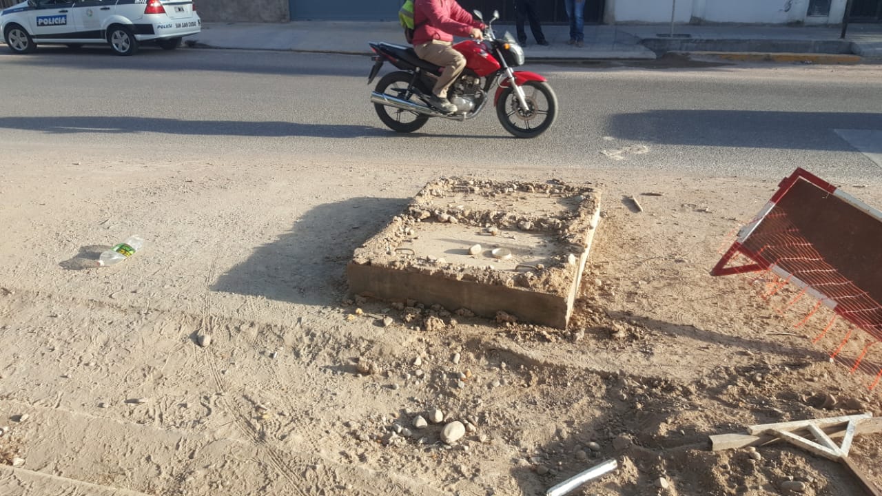 Según dijo el hombre, OSSE trabaja en el lugar pero los trabajadores no delimitaron bien la zona dejando fuera de lugar un gran bloque de cemento.