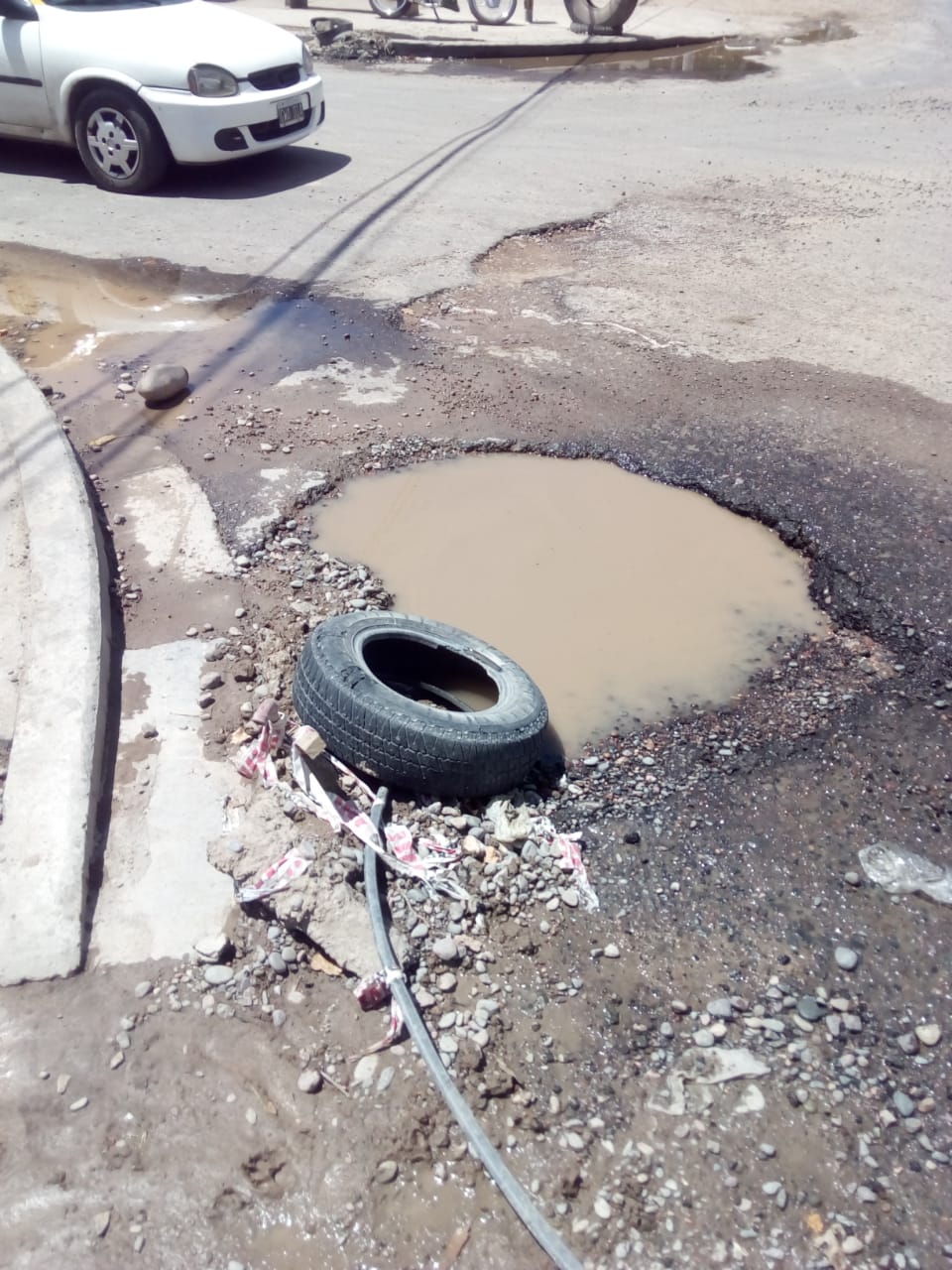 Un lector envió una imagen y el siguiente comentario: "Este pozo enorme está en la esquina de calle Santa Fe y San Miguel. Por favor ocúpense antes que ocurra un accidente".