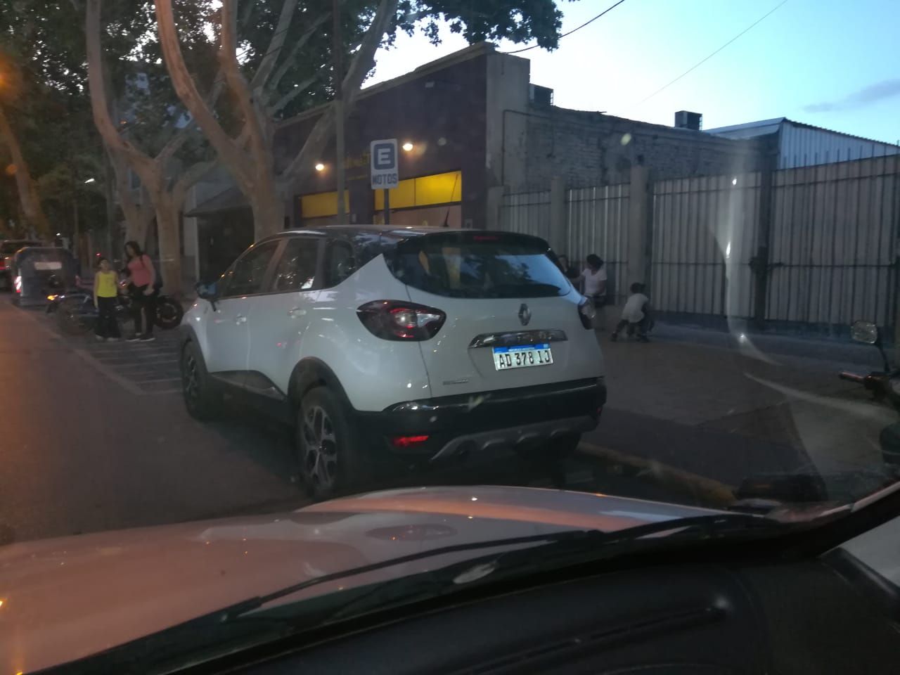 En la imagen puede apreciarse a una camioneta que está estacionada en la línea amarilla, justo donde estacionan las motos. "Todos los días de Lunes a Viernes, en la calle Rivadavia entre Avenida Rawson y Güemes, este vehiculo marca Renault modelo Captur estaciona prohibiendo el acceso a estacionar motos, siempre esta de las 18hs hasta las 21hs", dijo.