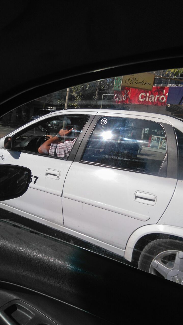 Un remisero hablando por teléfono. Y dicen que tienen carnet profesional. Esto fue en Libertador y Tucumán, pleno centro.