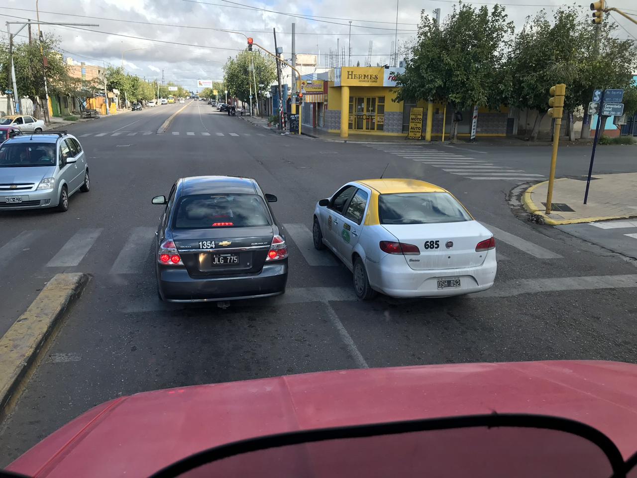 Un lector envió una imagen y el siguiente comentario: "Estos dos señores remiseros nodan el ejemplo, colocando sus autos a la par y sobre la senda peatonal".