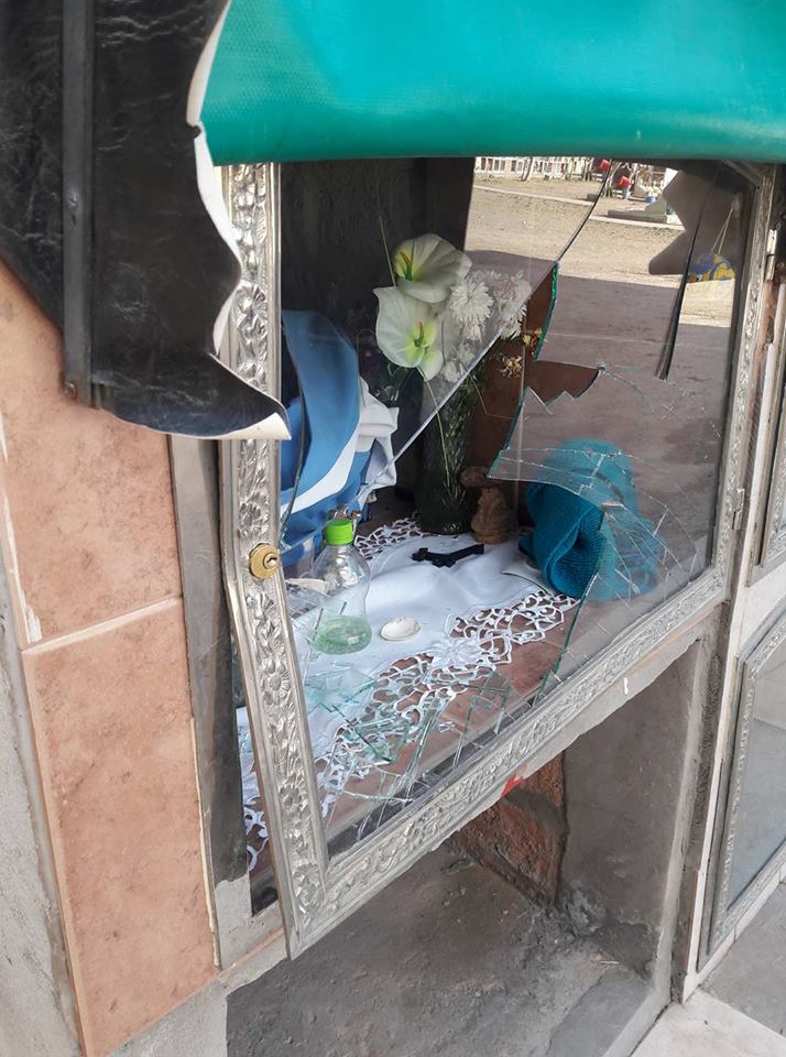 La lectora Cecilia Castro envió imágenes y el siguiente comentario: "Esto es eL cementerio de Albardón donde le viven haciendo daños a los nichos y robándose cosas. Éste es de mi papá que cada dos meses lo tenemos que arreglar. Además hay una mugre terrible en todo el cementerio".