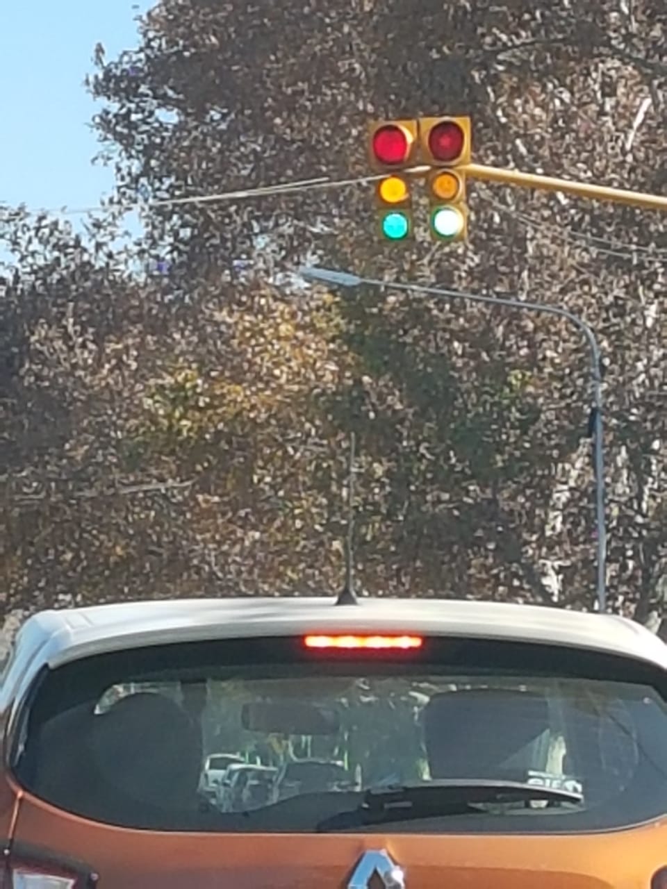 "Semáforo de calle Cabaña y Libertador. Todas luces prendidas al mismo tiempo. Así está todo el tiempo. Es un peligro".